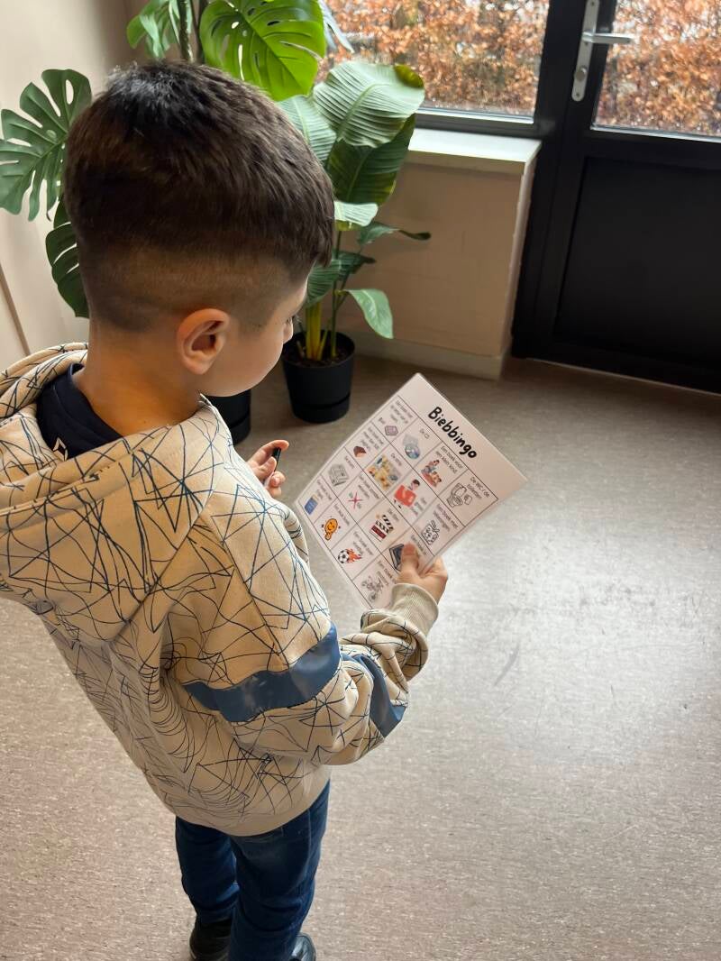 Ook in het Wereldlab waren we heel veel bezig rond boeken. Samen met de NT2-leerlingen gingen we naar de bibliotheek voor een bieb-bingo. Eerst mochten ze rustig rondkijken en boeken kiezen die hen aanspraken. Tot onze verrassing kozen ze allemaal Nederlandstalige boeken, zelfs al waren er ook boeken in hun eigen taal. Echt knap! Daarna gingen ze met een door mij voorziene bingokaart op zoek naar allerlei specifieke dingen in de bibliotheek.